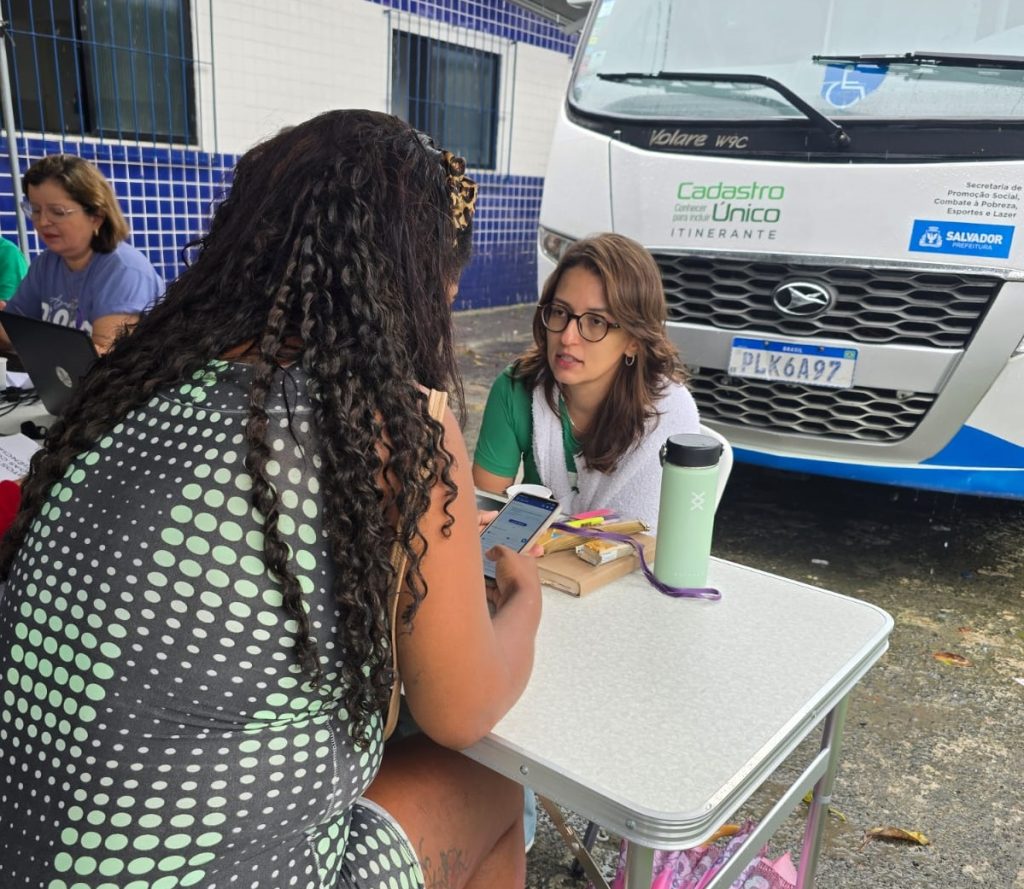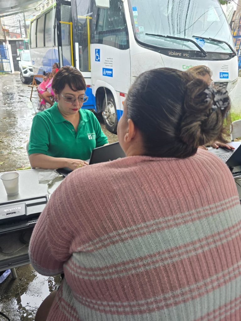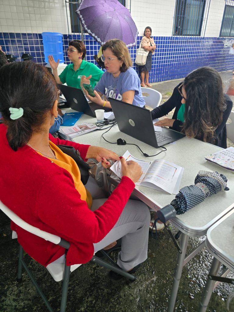 Nem a chuva forte da manhã desta quarta-feira (22) diminuiu a procura pelos serviços da Defensoria Pública da Bahia, na itinerância “Nudem Bahia em Movimento”, realizada na Unidade Básica de Saúde Cecy de Andrade, no bairro de Castelo Branco, em Salvador. O objetivo foi levar atendimento jurídico itinerante e gratuito a mulheres, além de promover a distribuição de materiais informativos à população do bairro.