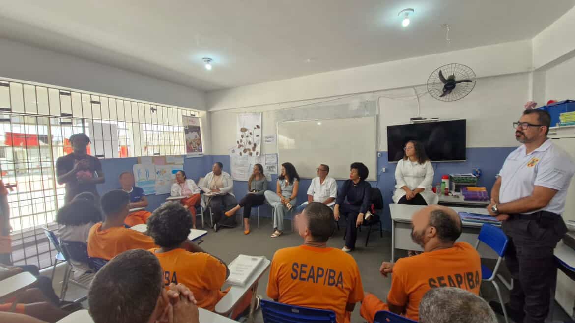 Participamos da programação do Novembro Negro do Conjunto Penal de Simões Filho por meio da coordenadora do Núcleo de Equidade Racial, Raquel Malta. Na ocasião, palestramos sobre o tema "A Importância da Preservação e Reparação dos Direitos de Grupos Sociais Vulneráveis”.