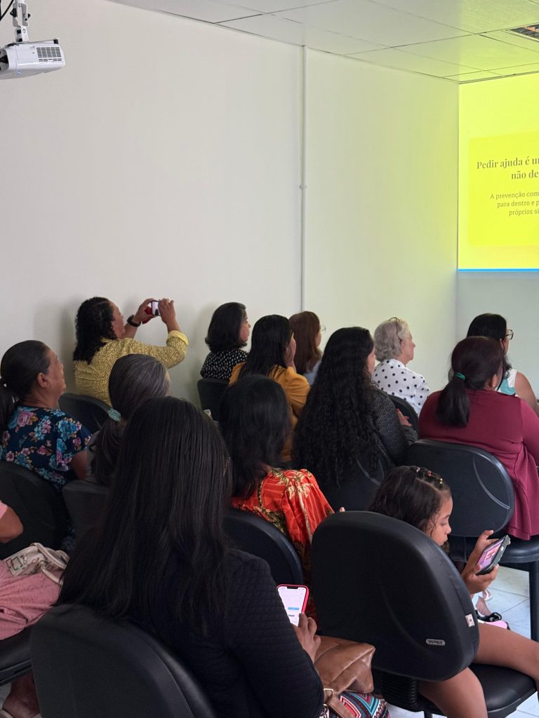 Promovemos um momento de escuta, acolhimento e reflexão sobre a importância da saúde mental para os(as) usuários(as) de nossos serviços que exercem papel de cuidado. Pessoas que acessam o CRAS, CREAS e pacientes do Ambulatório Central participaram da atividade conduzida por estudantes do curso de Psicologia da Faculdade Anhanguera.