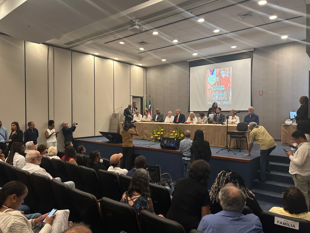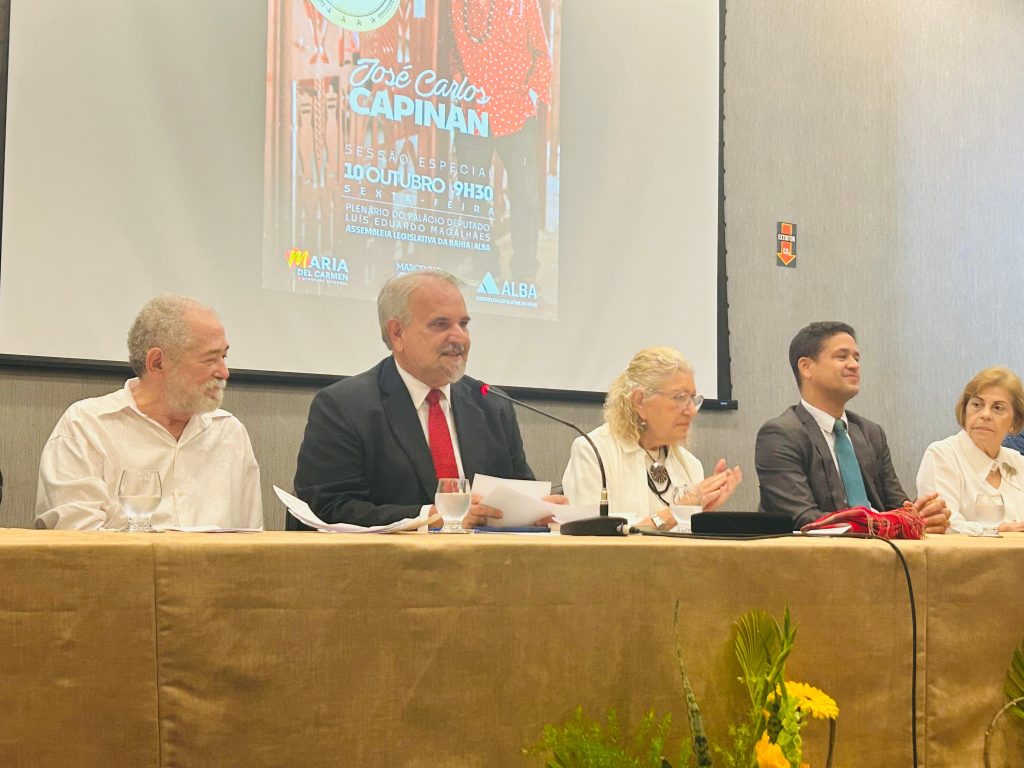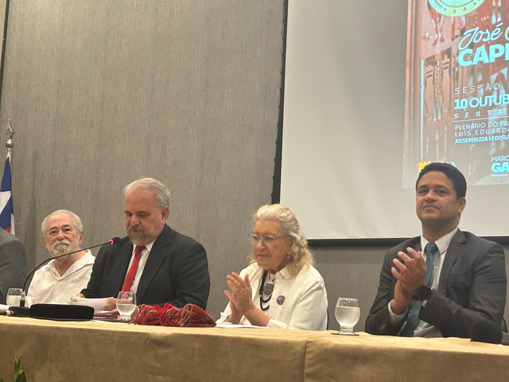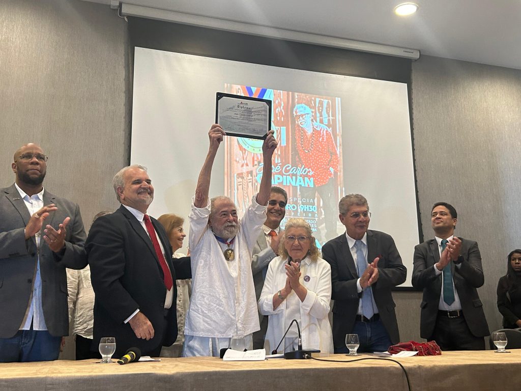 Reafirmamos e renovamos nossos compromissos institucionais na entrega da Comenda 2 de Julho ao poeta e escritor José Carlos Capinan. Proposta pela deputada Maria del Carmen, a mais alta honraria do Legislativo baiano reconhece as contribuições do artista na defesa da democracia e da justiça social, pilares do nosso país e da Defensoria Pública. Além do assessor do Gabinete João Gavazza, parlamentares, representantes do Executivo e artistas prestigiaram o evento.