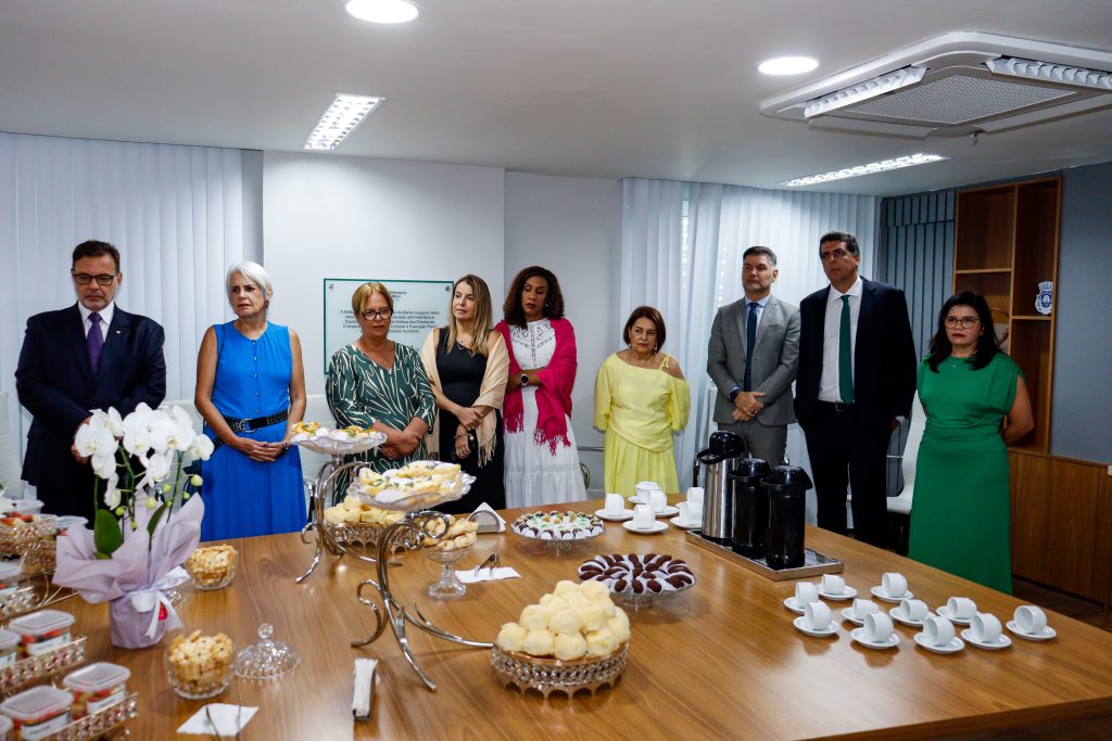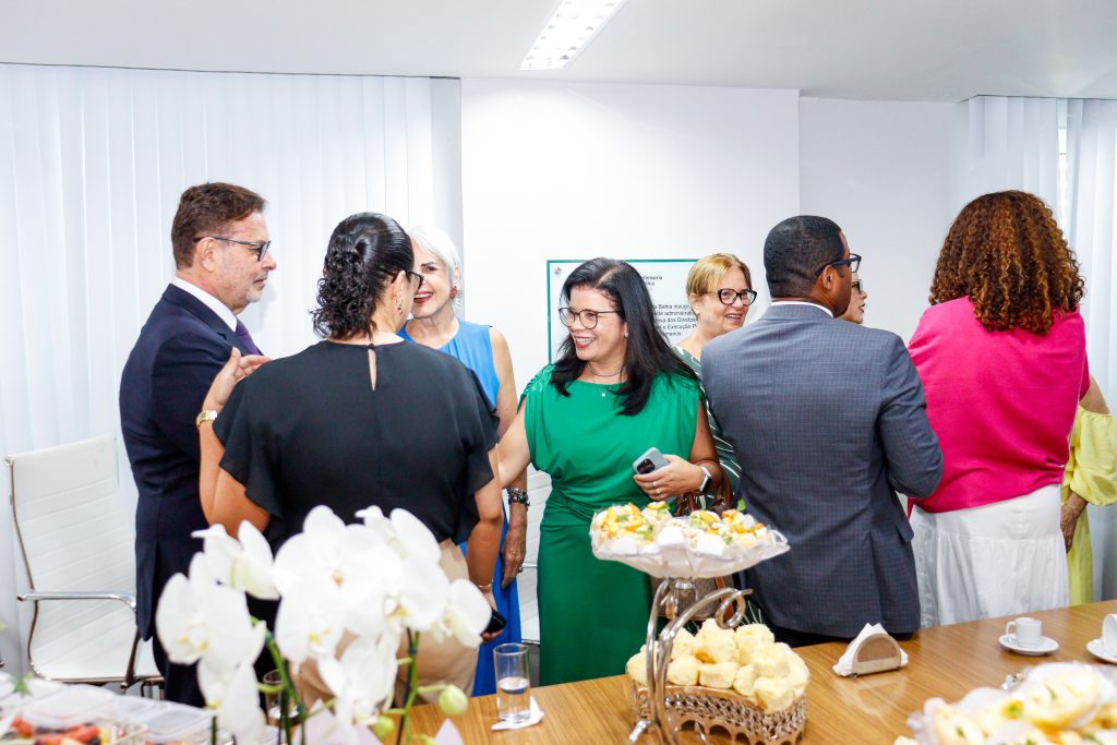 Reunião com ex-defensoras e ex-defensores públicos gerais na sala do Conselho Superior, no Centro Administrativo da Bahia, para resgatar memórias e trajetórias profissionais desses ex-gestores(as), em preparação para a celebração dos 40 anos da Instituição.