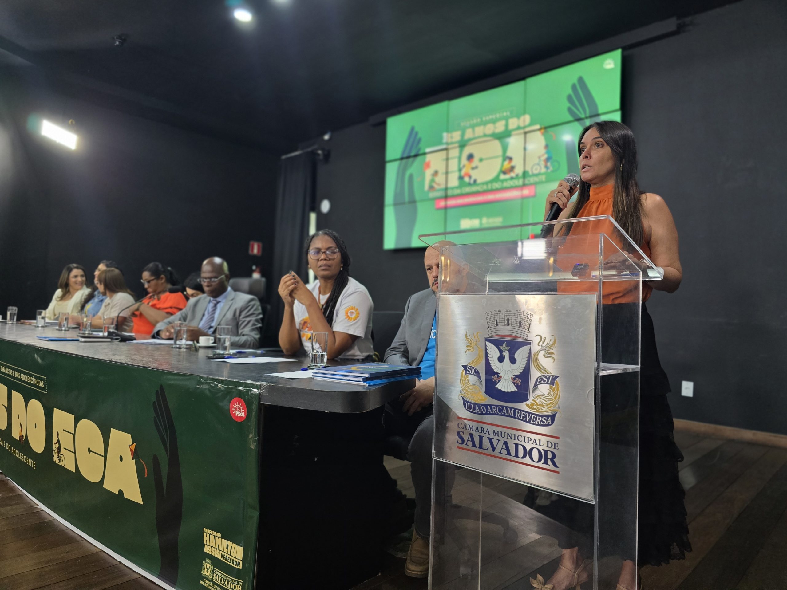 Participamos da Sessão Especial 35 Anos do Estatuto da Criança e do Adolescente (ECA), realizada no Centro de Cultura da Câmara de Salvador. Proposta pelo vereador Hamilton Assis, o evento discutiu os avanços da legislação e o fortalecimento da rede de proteção ao respectivo público.