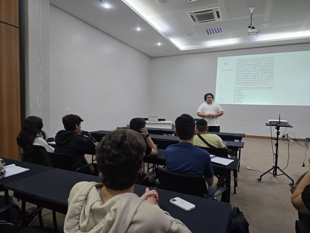 O aulão teve como principal objetivo reforçar os principais tópicos exigidos no Enem, além de oferecer aos estagiários um espaço de troca de conhecimentos e estratégias de estudo para o exame. Os(as) estagiários(a) tiveram a oportunidade de revisar os temas com professores. Para o professor Luiz Amorim, o aulão é uma excelente oportunidade para acalmar os alunos nesses momentos finais. “O aulão tem uma função muito mais de tranquilizar o aluno. A perspectiva do aulão não é apresentar algo novo, é pontuar para o(a) aluno(a) aquilo que ele já viu durante o ano letivo ou durante o ensino médio dele(a). Ele(a) tem que ver como é a abordagem que o Enem tem feito para que ele(a) se sinta seguro”, explicou.
