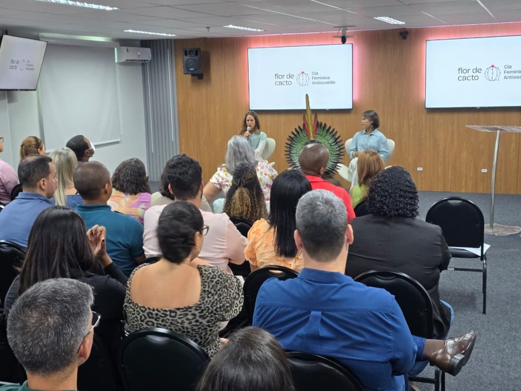 A abertura da programação na sede incluiu ainda uma palestra sobre “Práticas cidadãs para mudanças efetivas na nossa cultura”, realizada por Clarissa Hirs e Carolina Sampaio, da Companhia Feminina Antiassédio, Flor de Cacto. Foram trazidas, na ocasião, reflexões sobre comportamentos negativos que não devem ser reproduzidos para uma convivência respeitosa entre homens e mulheres e também foi apresentado o trabalho da companhia.