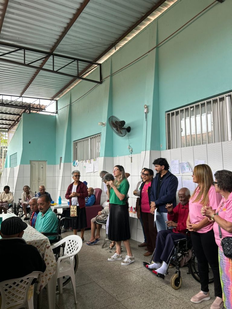 A primeira ação ocorreu na Fundação Abrigo Leur Britto que acolhe 64 idosos e idosas, nesta quinta-feira (23). Durante a visita, foram realizadas orientações jurídicas, escuta qualificada, atividades lúdicas, atendimentos odontológicos e a entrega de doações arrecadadas junto à sociedade civil e parceiros como a OAB Subseção Jequié, Câmara de Vereadores de Jequié, Prefeitura Municipal de Jequié, Rotary Club Vale das Montanhas Jequié e InBahia. Maria Luciene, diretora do abrigo, salienta que os serviços trazidos às pessoas idosas é garantir cidadania e dignidade a todas as pessoas. “Nós queremos agradecer essa solidariedade, esse caminhar juntos, nós precisamos disso!”, disse a diretora.