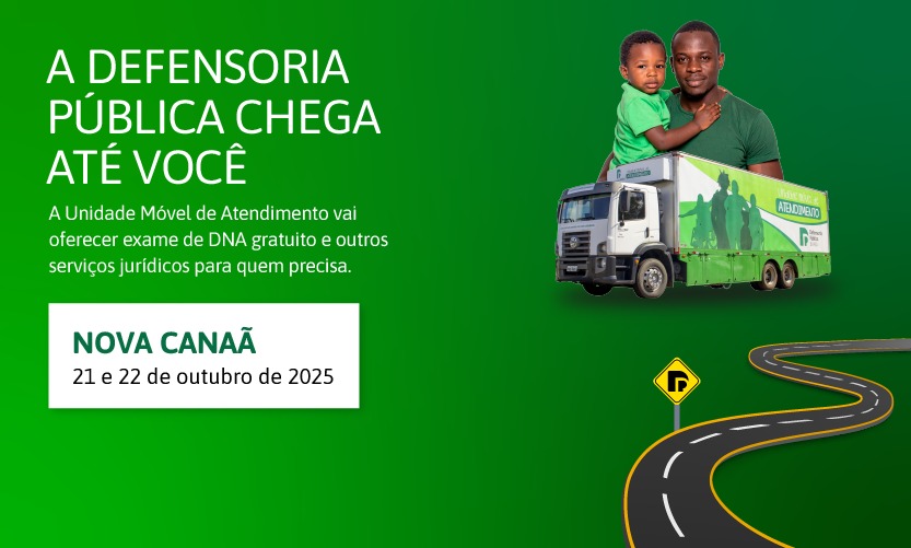 A Defensoria Pública do Estado da Bahia (DPE/BA) vai percorrer quase 500 quilômetros com a sua Unidade Móvel de Atendimento (UMA) para prestar assistência jurídica gratuita à população de Nova Canaã, nesta terça (21) e quarta-feira (22). O caminhão da Defensoria ficará estacionado na Praça Lomanto Júnior, no Centro da cidade, onde vai oferecer uma série de serviços voltados à garantia de direitos.